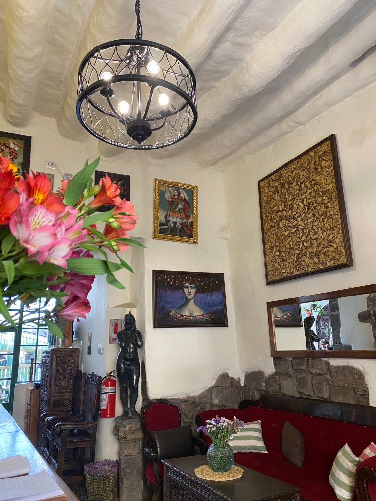 Restaurante que trabaja con insumos locales, con linda decoración, Tienes la opción de comer en el primer piso junto a un horno de pizza o en el segundo piso con techos altos y balcones hacia San Blas. El ambiente es íntimo y hasta romántico, con luz de velas para las cenas. Recomiendo hacer reservaciones.