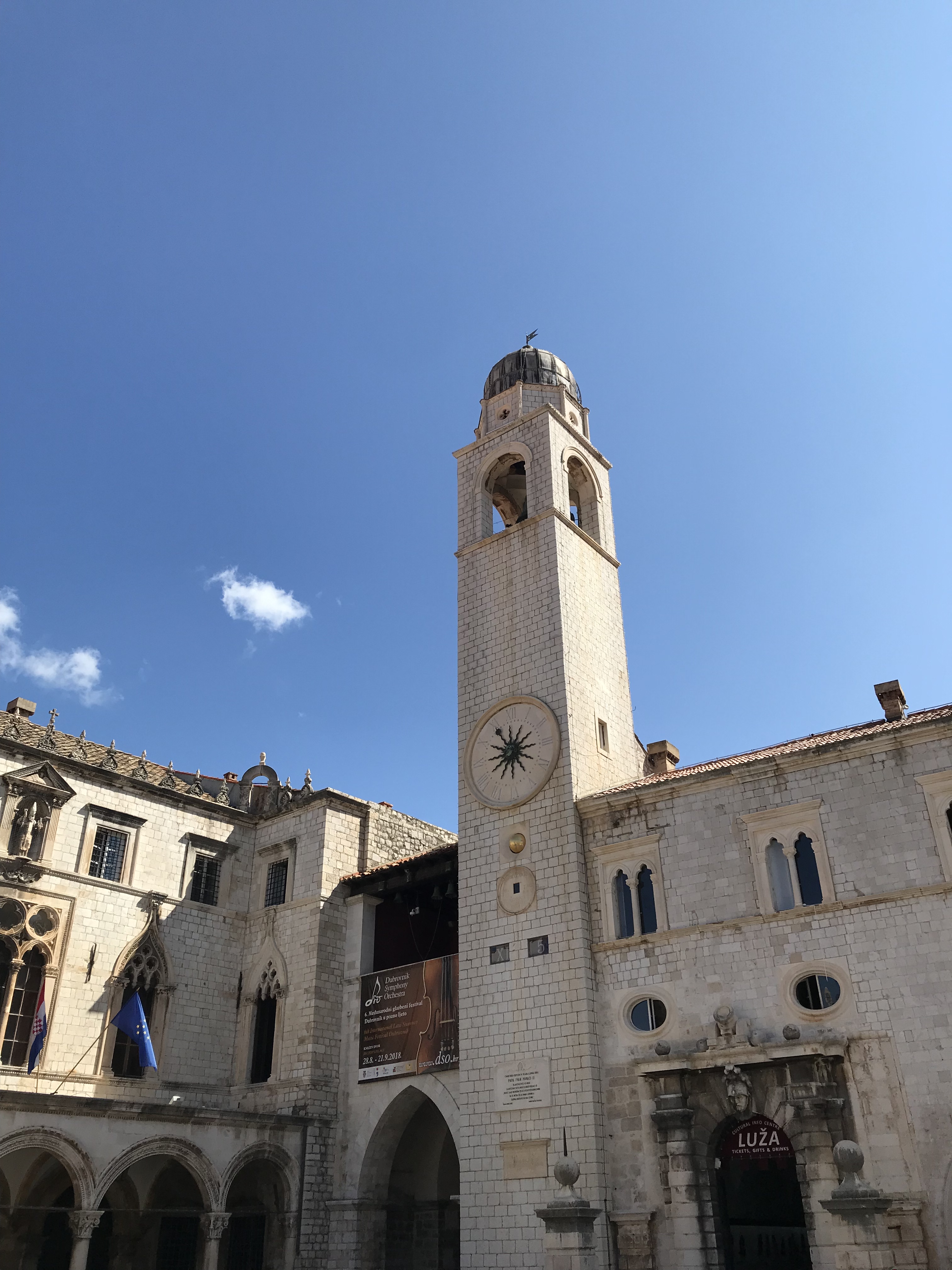 - Pasear por la ciudadela: empieza por la Calle Stradun, la vía principal que te llevará hacia la Plaza de Luža, donde esta la Torre del Reloj y la Iglesia de San Blas. La ciudadela te enamorará con sus plazuelas empedradas llenas de vida con mercados y artesanos. Perfecta para visitar de día y de noche. No olvides ver el mar desde el Puerto Viejo y caminar por las escaleras de la Iglesia de San Ignacio.