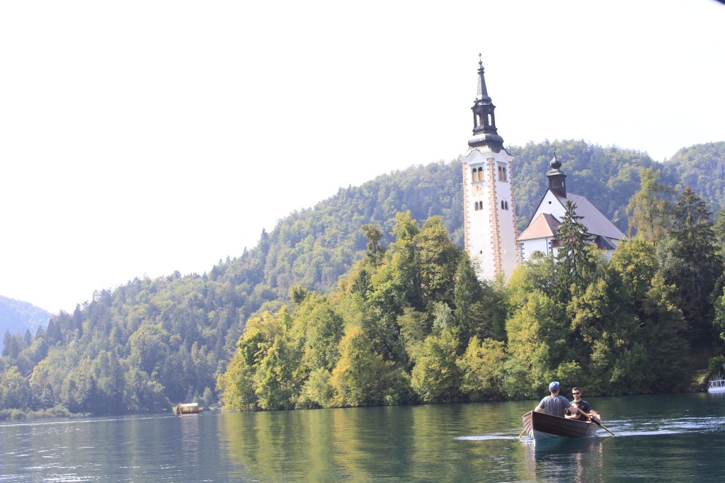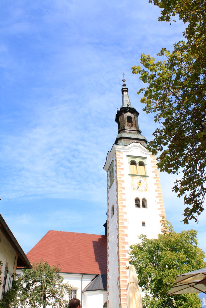 ✓ Visitar la isla de Bled y la Iglesia: €12 – La única manera es yendo en bote (llamados Pletna). Salen cada hora desde las 10am hasta las 6pm. Para regresar puedes tomar cualquier otro bote. El ticket incluye visita a la Iglesia de Madre de Dios del Lago y poder tocar la campana (y asi pedirle un milagro). También hay un hotel en la isla y un lugar para comer pasteleria tipica (Potičnica). Probamos el helado basado en el postre bandera de Bled Kremna Kepica.